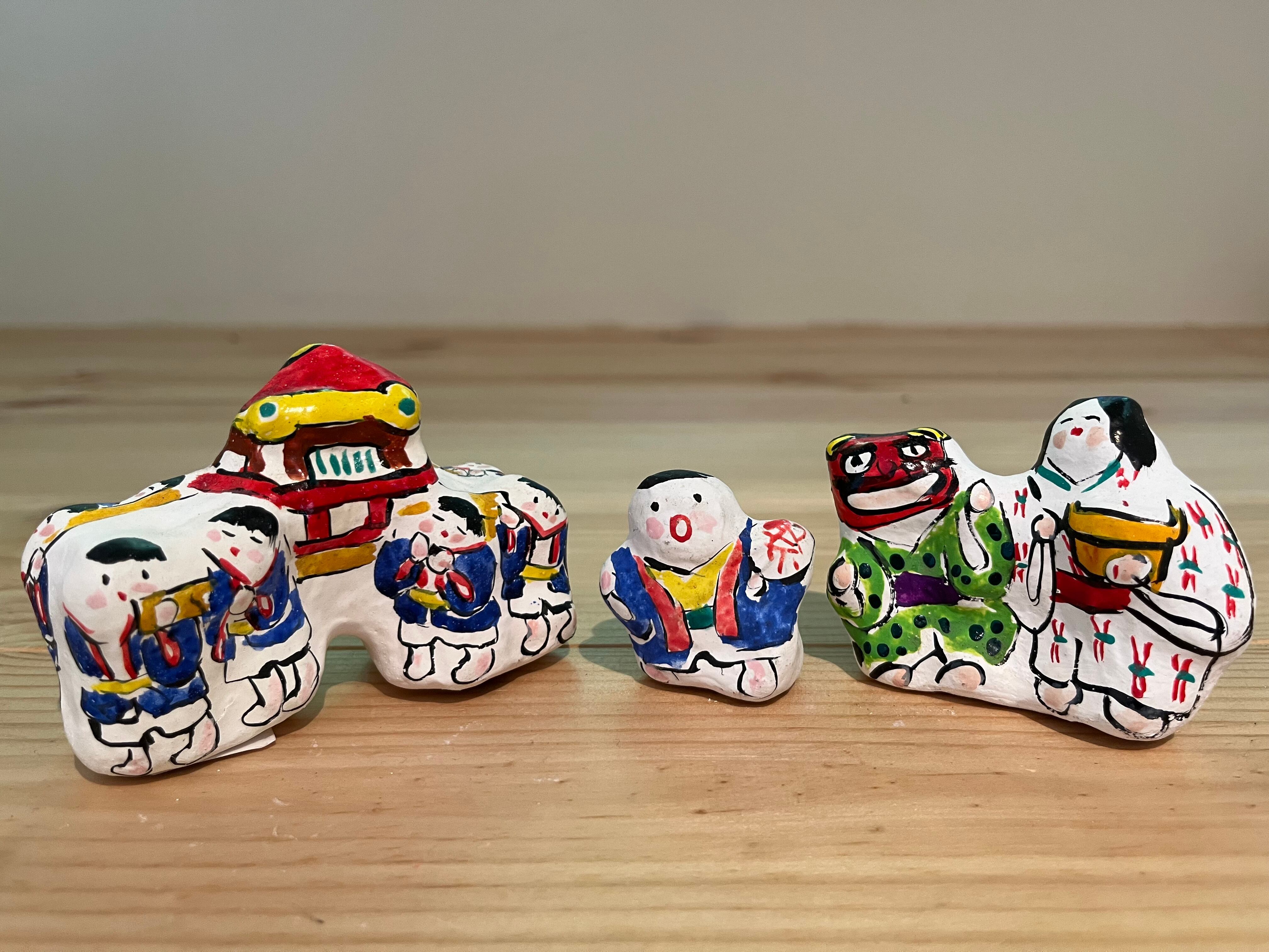お神輿を担いだり、鬼のお面をつけて踊ったり、今日はお祭りでまちは大盛り上がり。