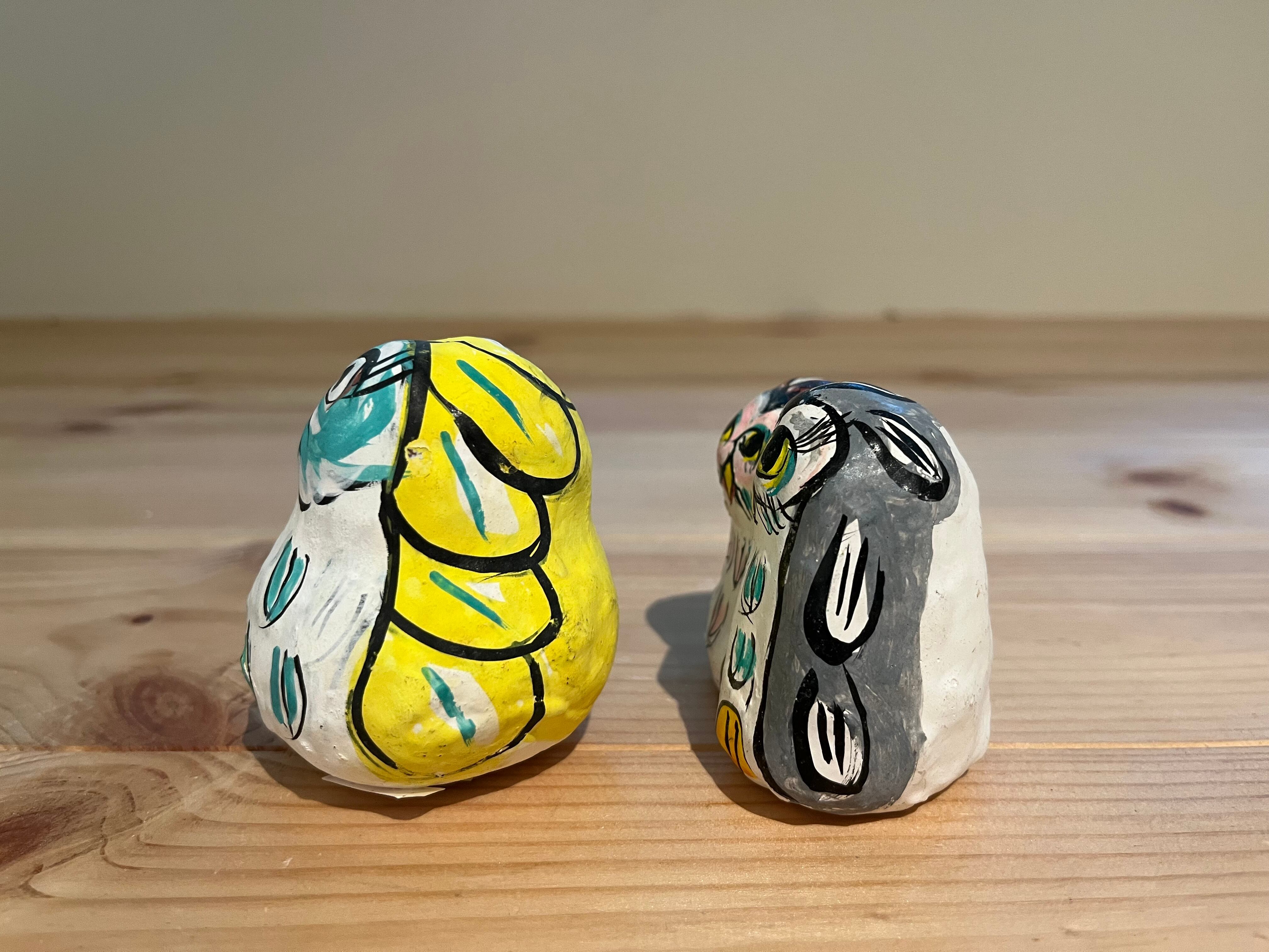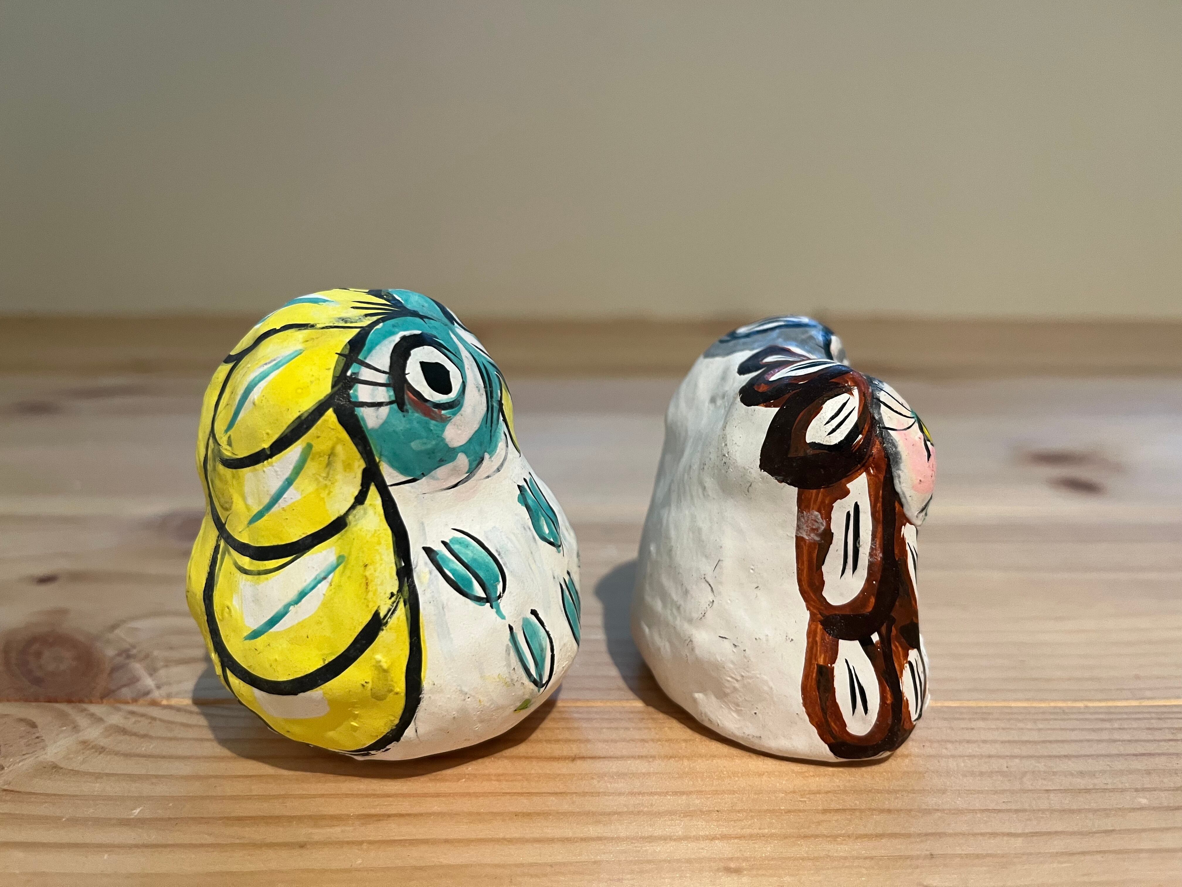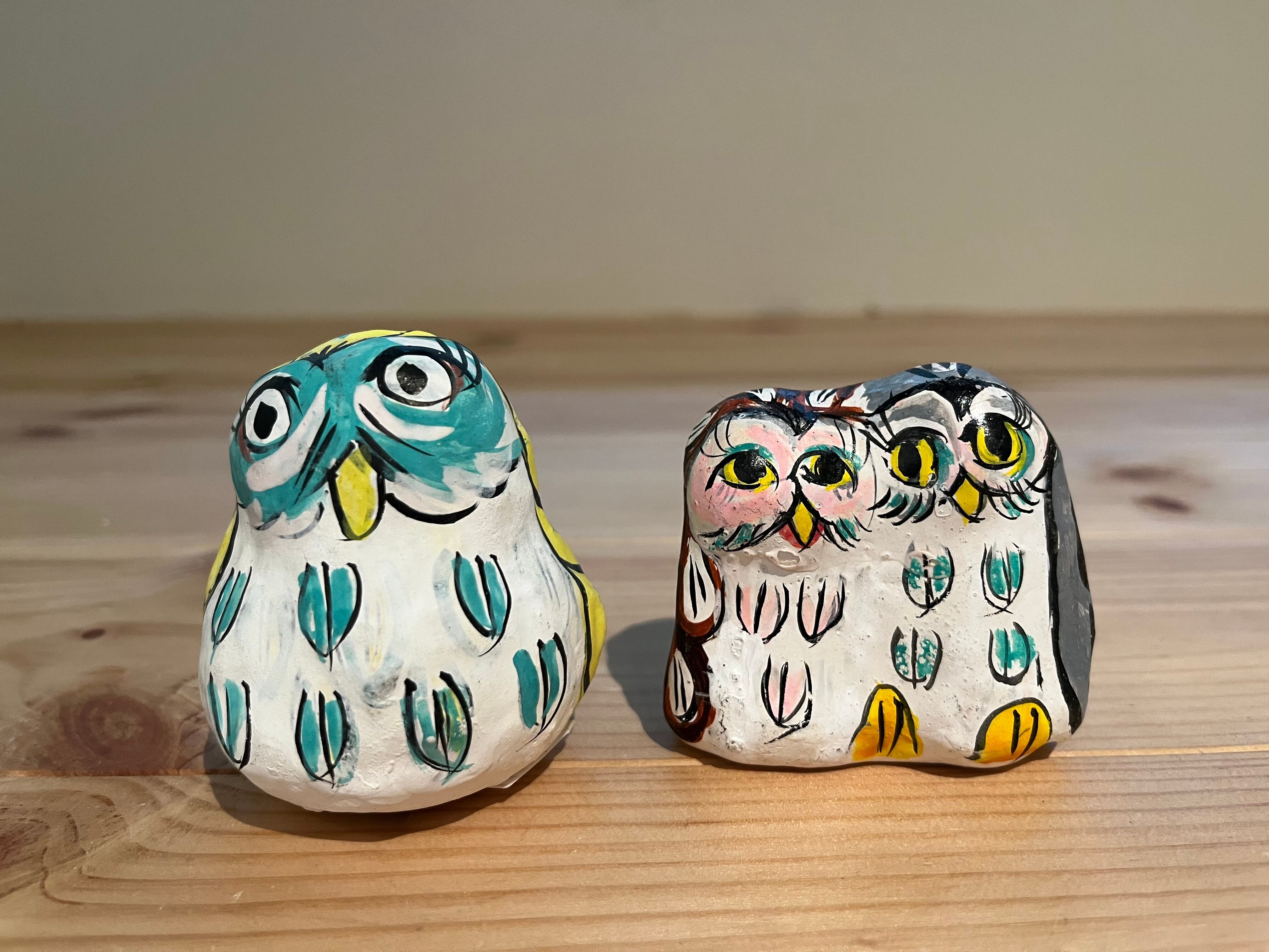 羽の色がカラフルで美しいフクロウたち。他のフクロウたちからも一目置かれる存在です。