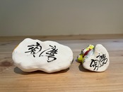 写真右の黄色い猫は、「いらっしゃい」という須磨張り子オリジナルの両手で手招きする招き猫です。