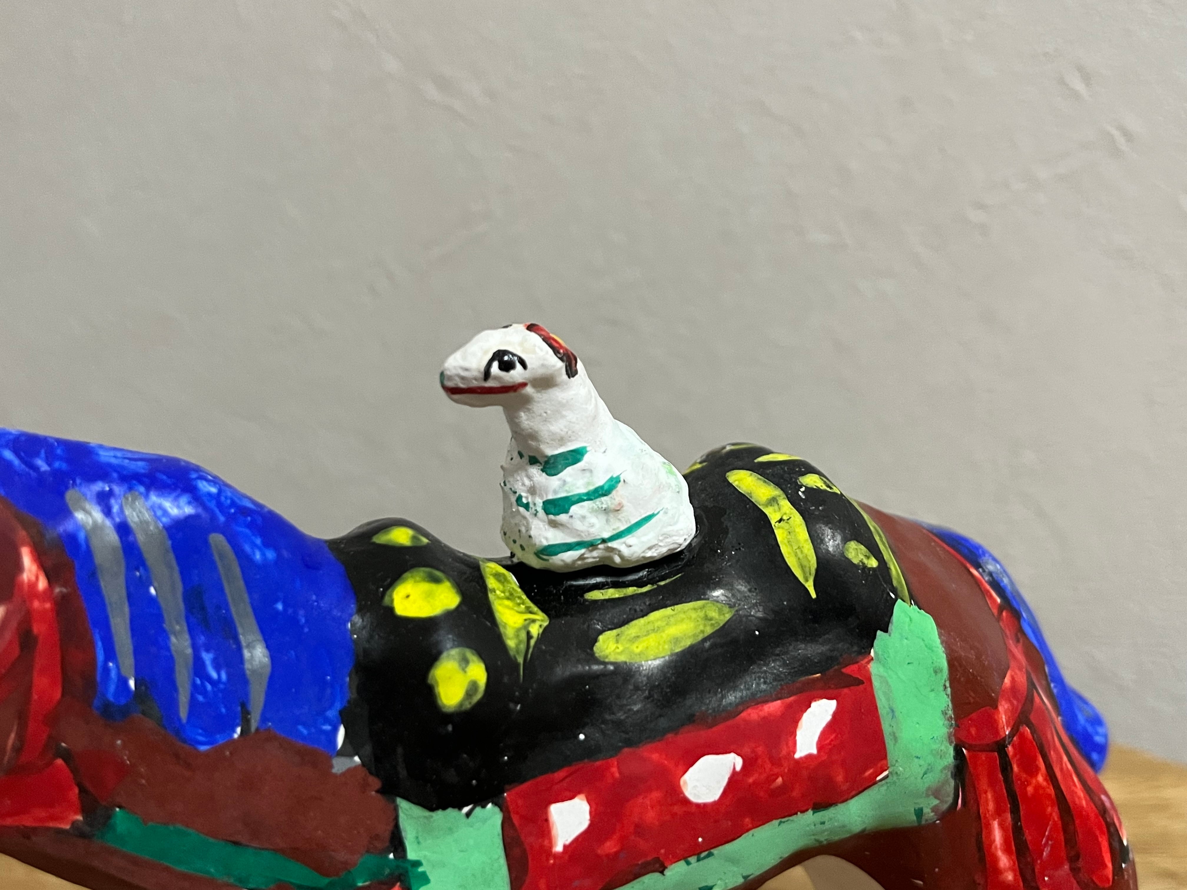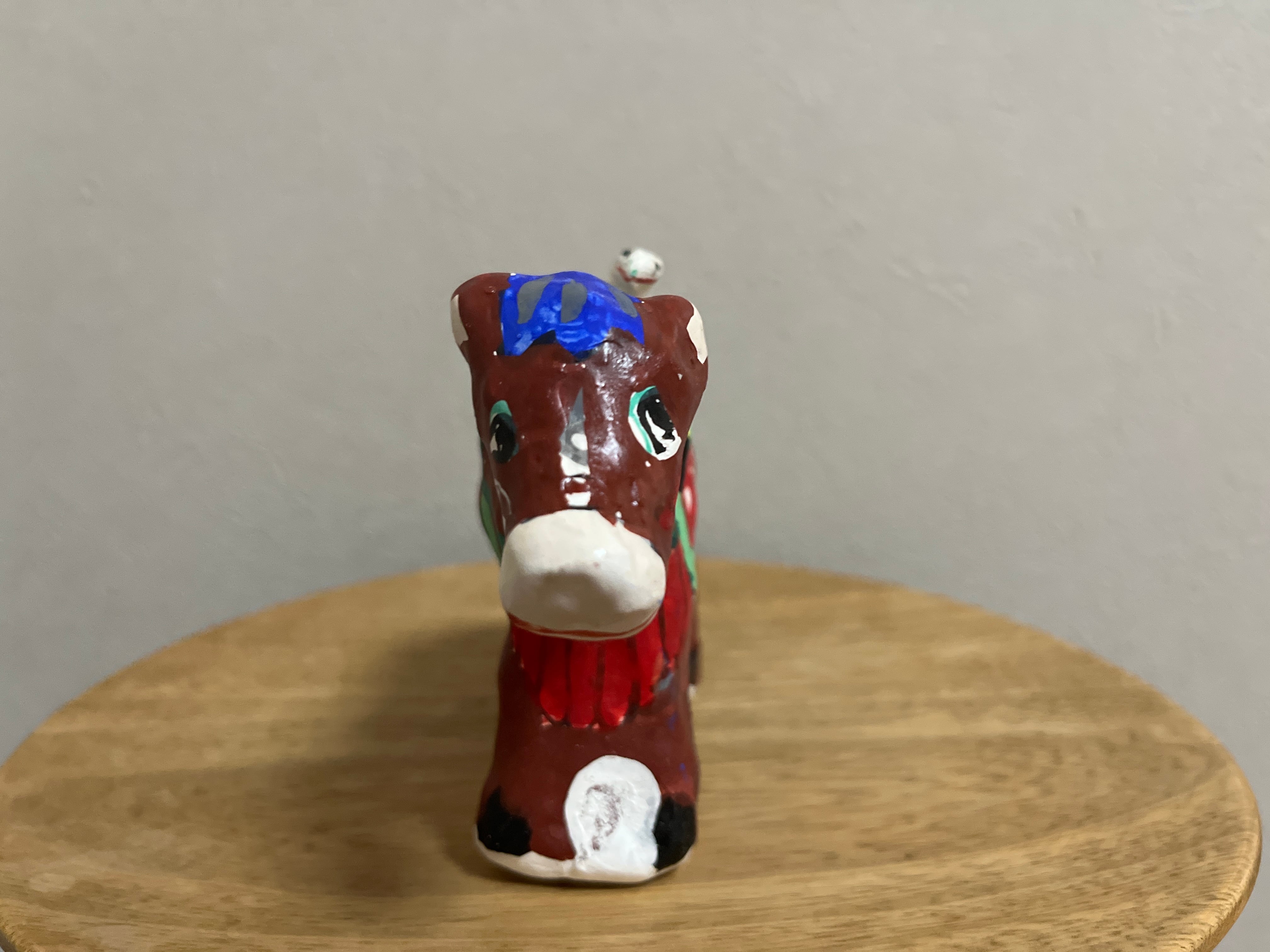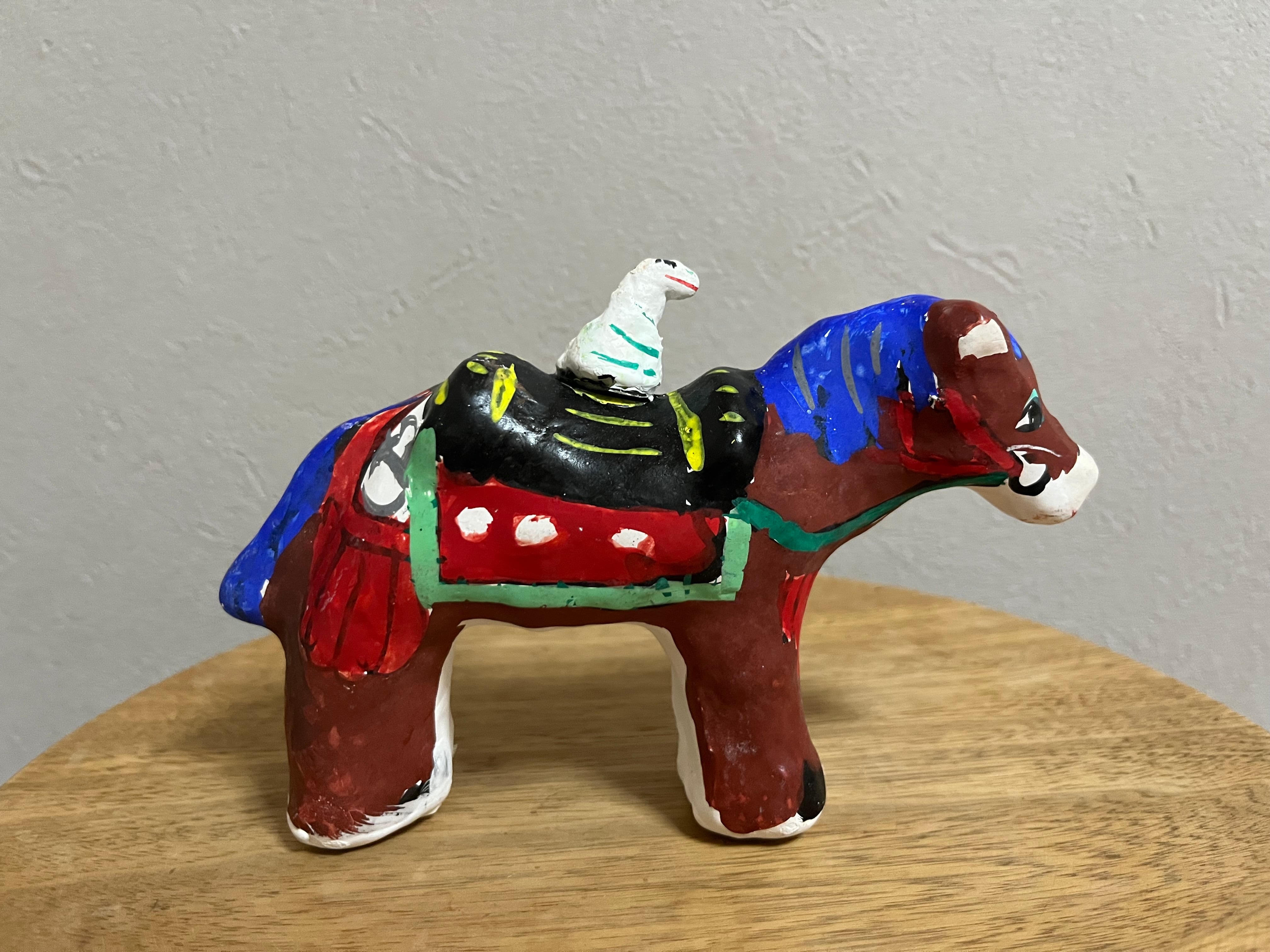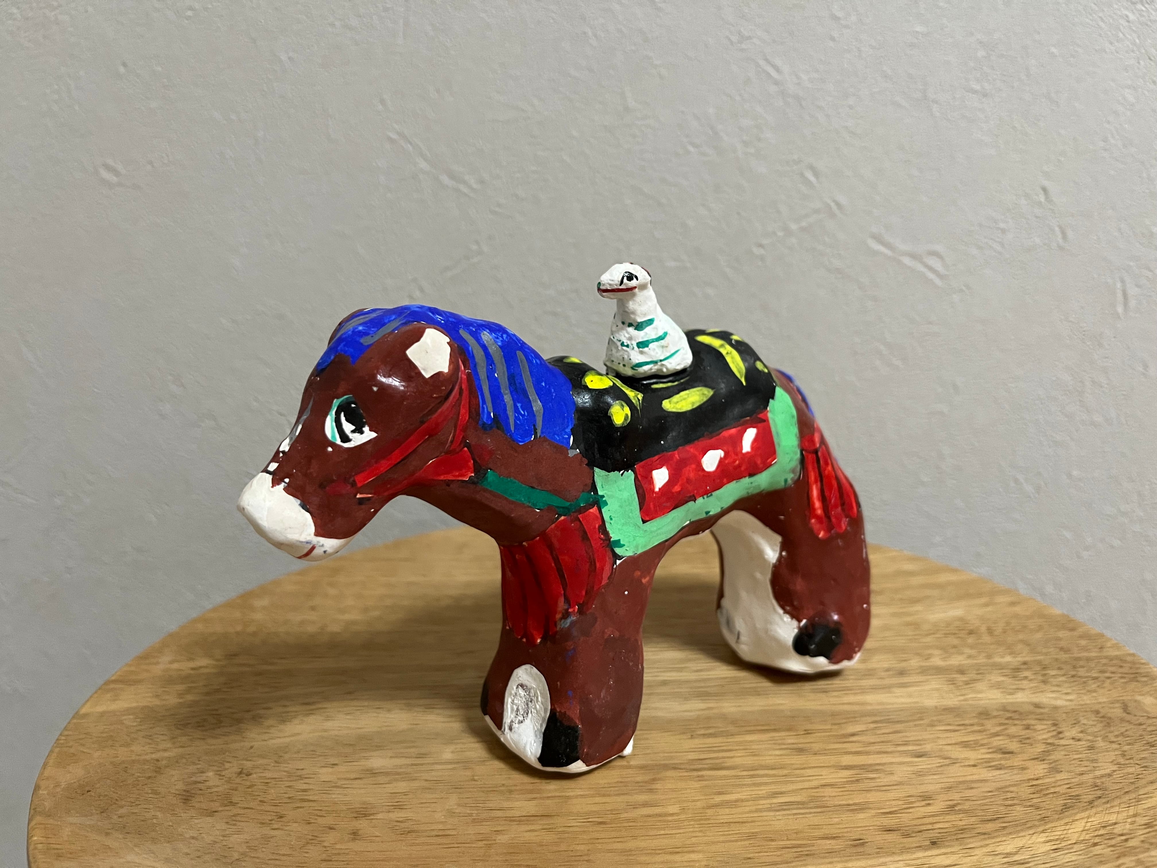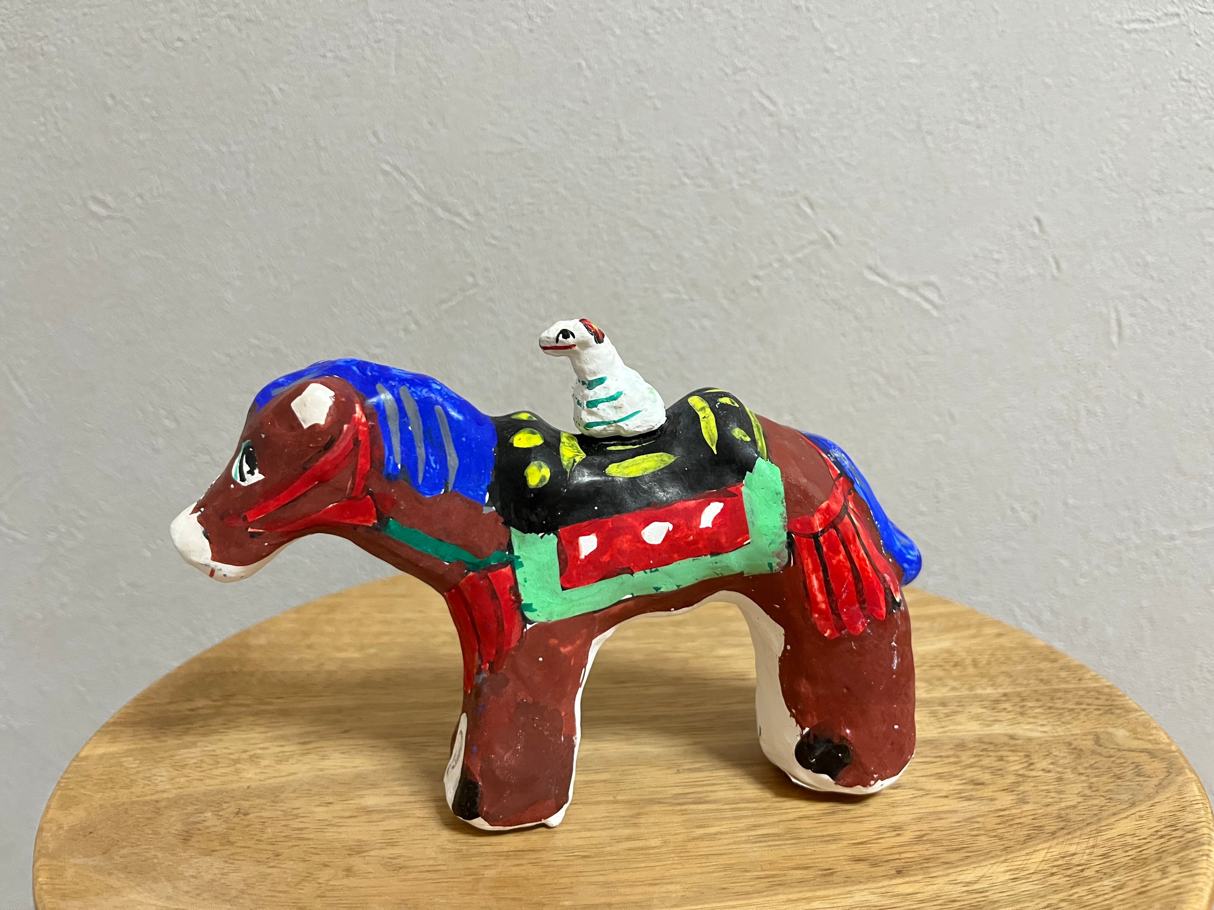 ウマの上に小さなヘビが。1年間の役目を終えたヘビからウマへ、バトンタッチ!