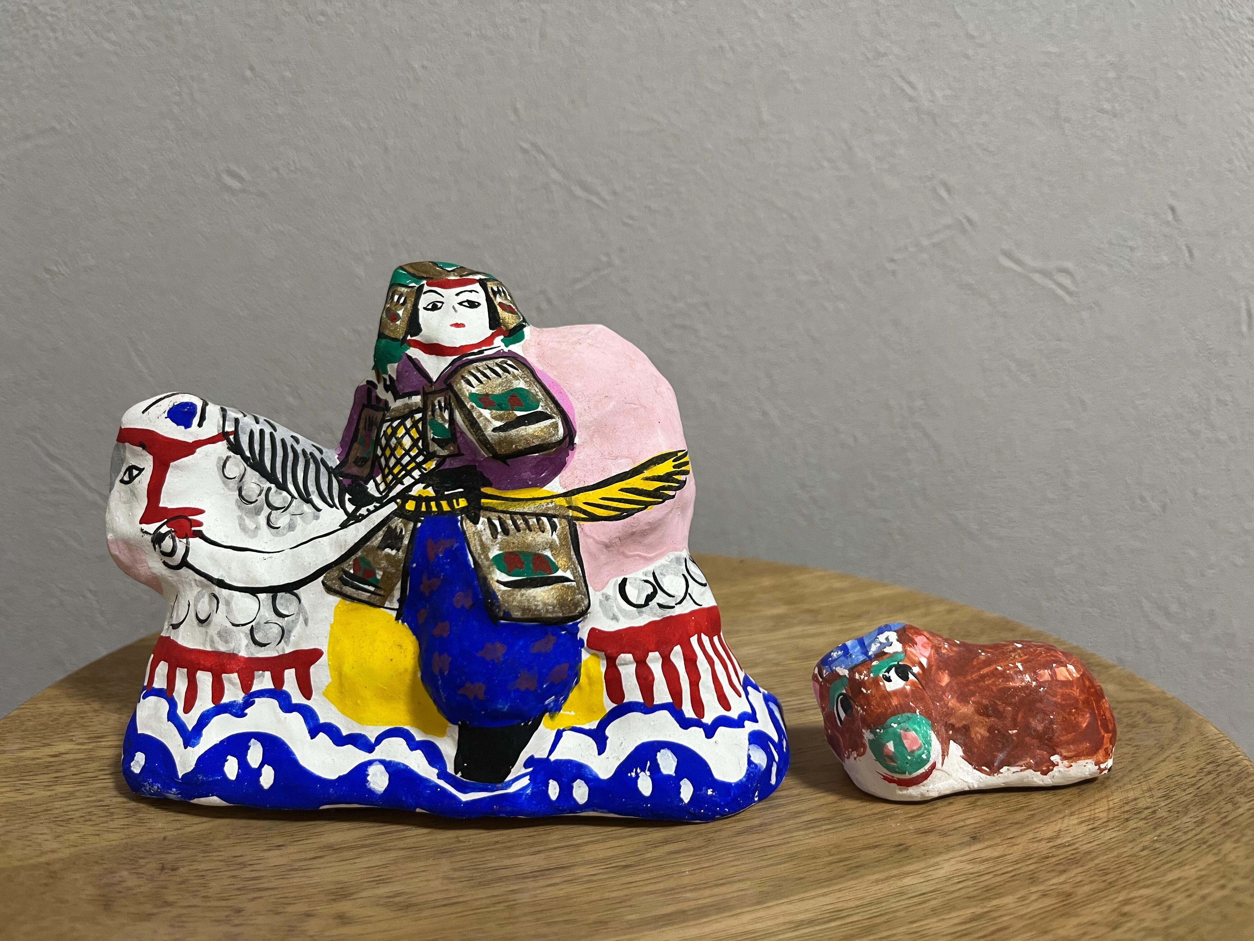 かっこいい鎧をつけた平家の武士と、その相棒の白馬。