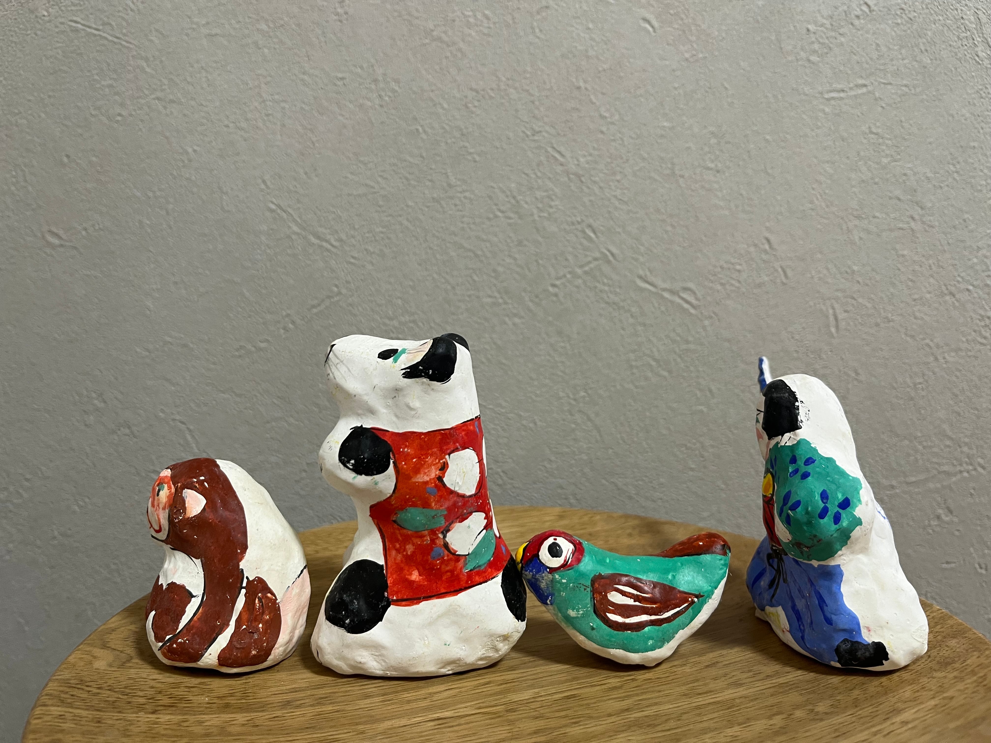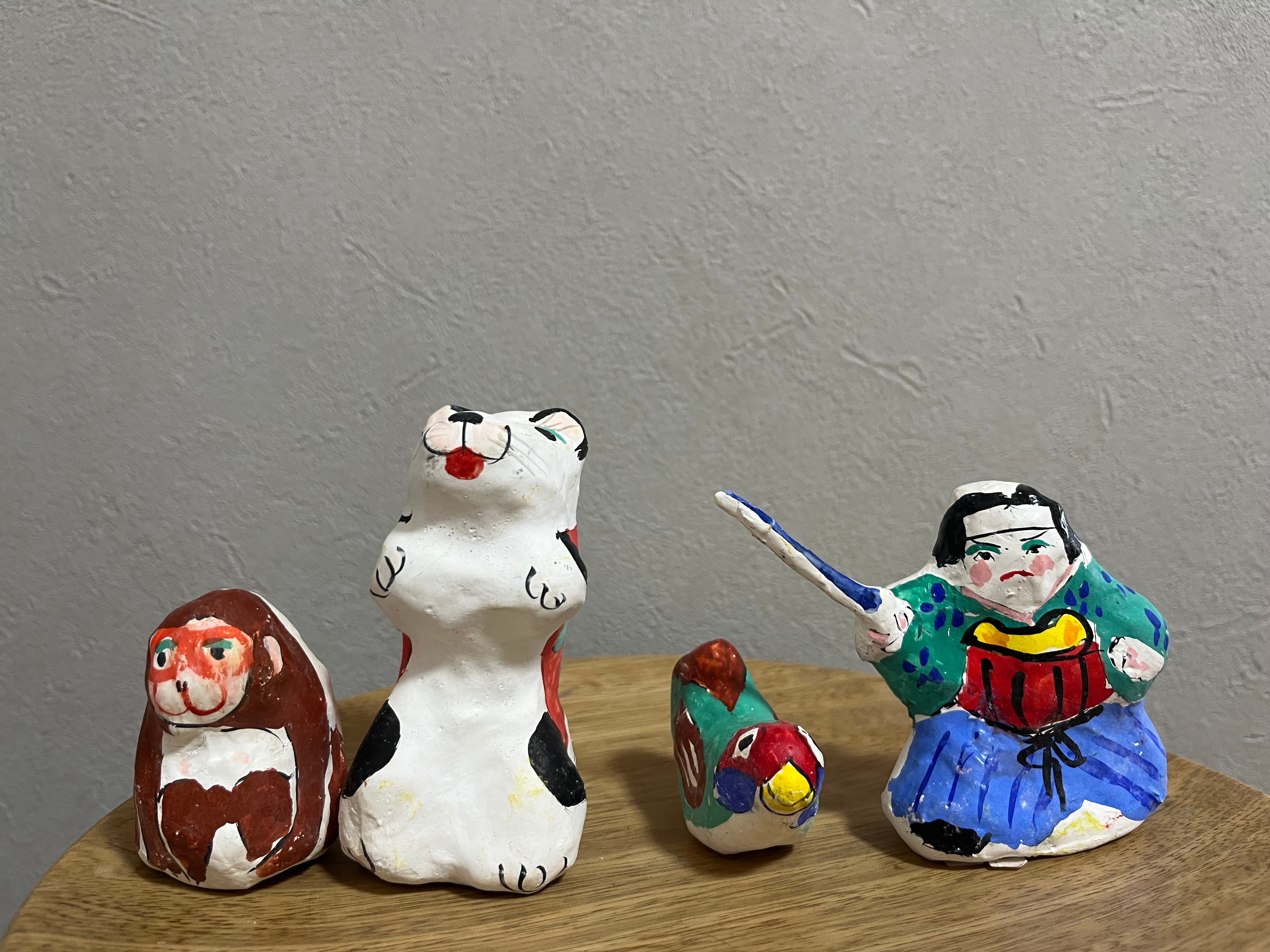 勇ましく鬼退治に向かう桃太郎と、その仲間の犬、猿、きじをセットでお届け!ぜひ一緒に飾ってあげてください☺️