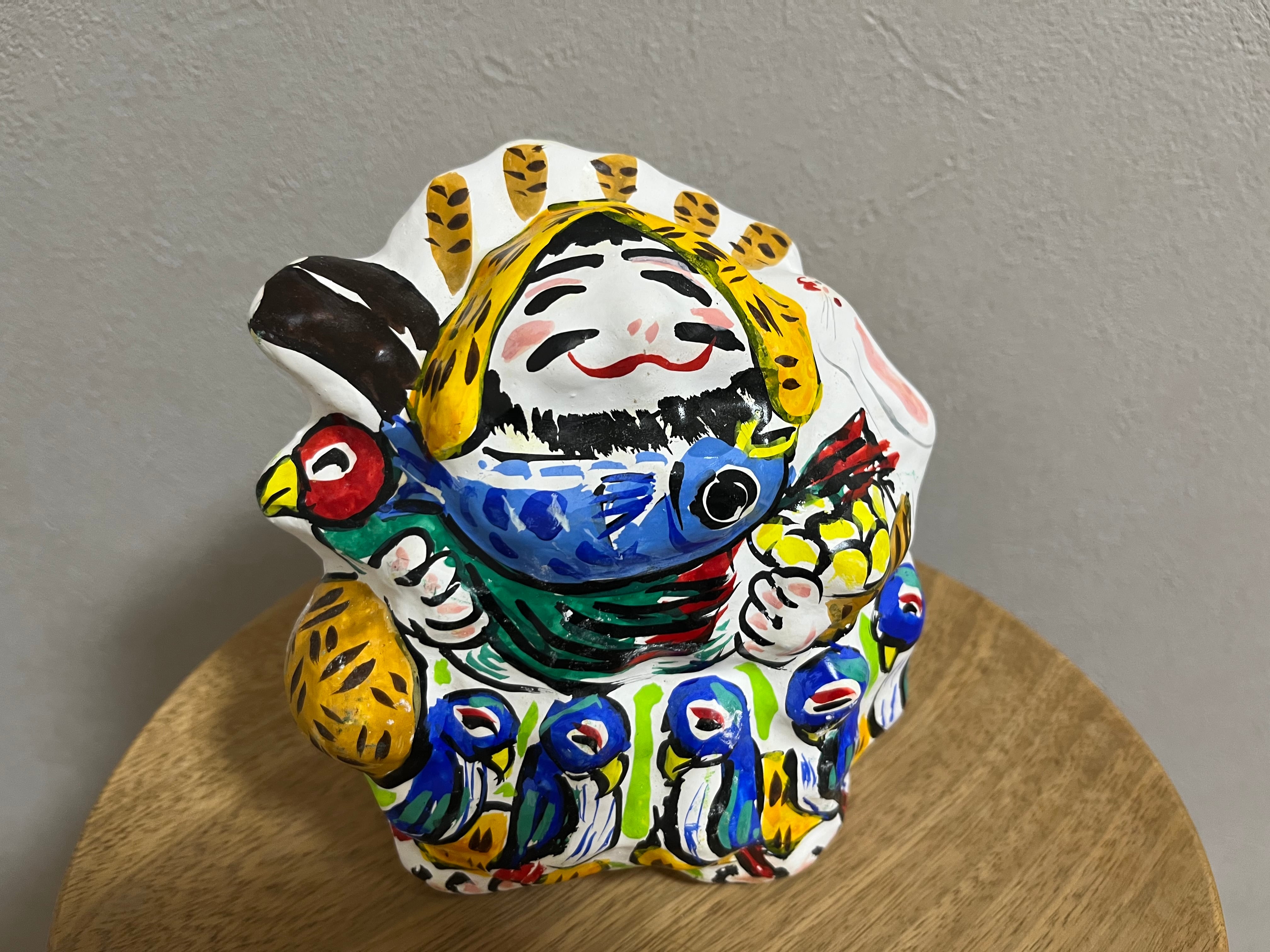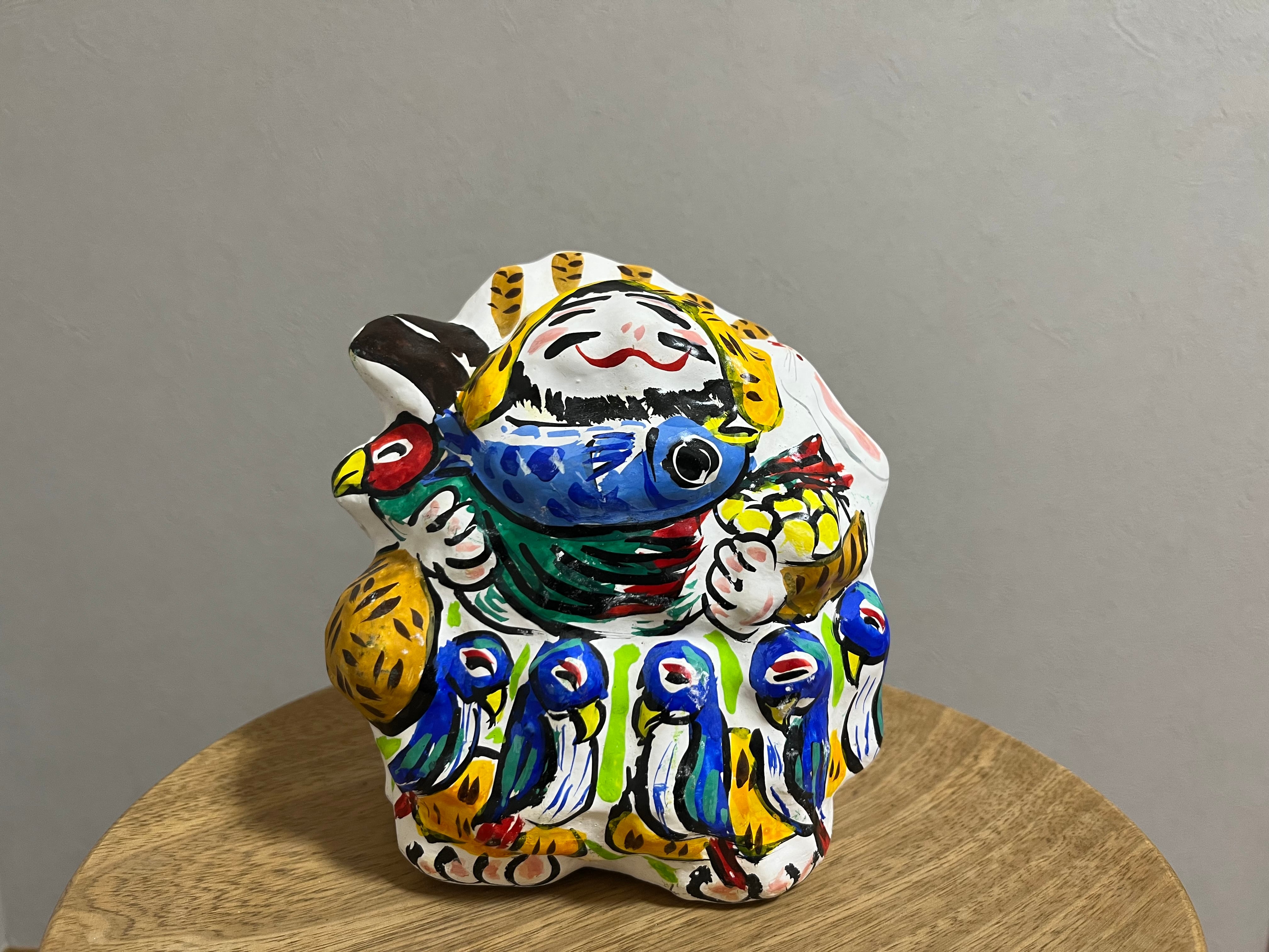 「まのいい漁師」という日本の民話絵本をモデルにした作品。強運な物語なので、飾っていたら、運気アップしそうです!