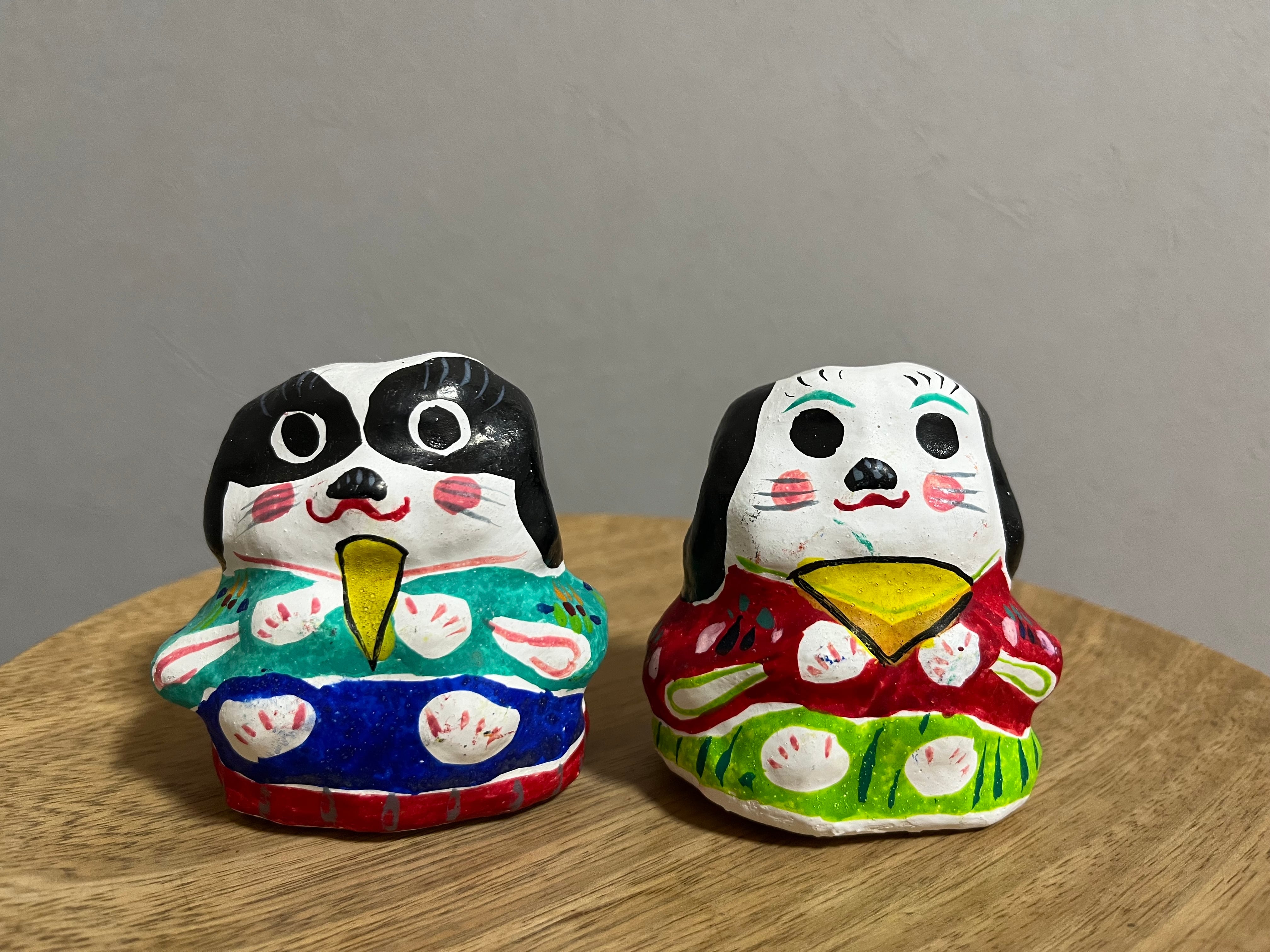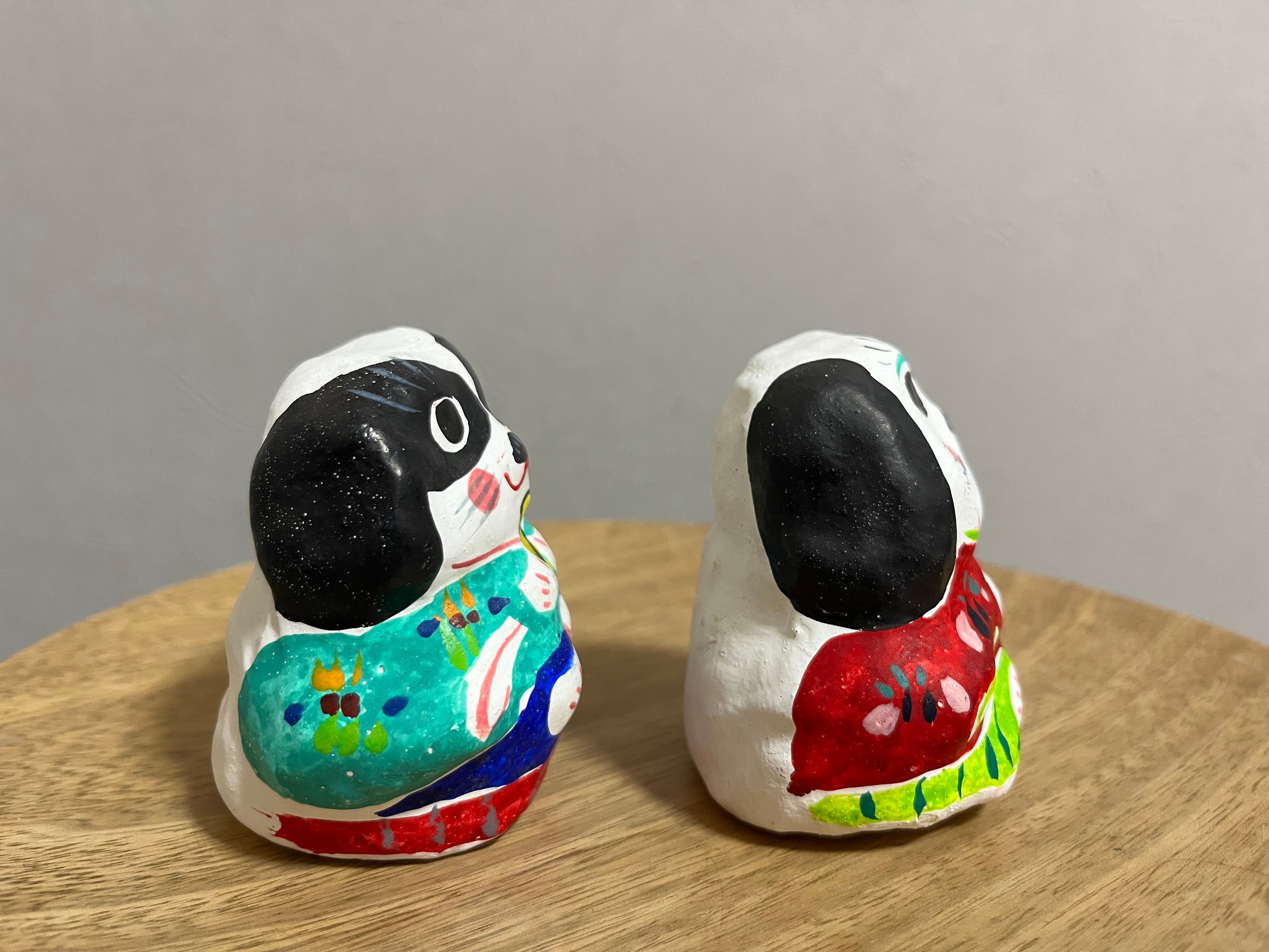 とにかく愛らしい、ぽってりとした犬のひな飾り。まんまるおててが着物から出ているのが可愛すぎます♡