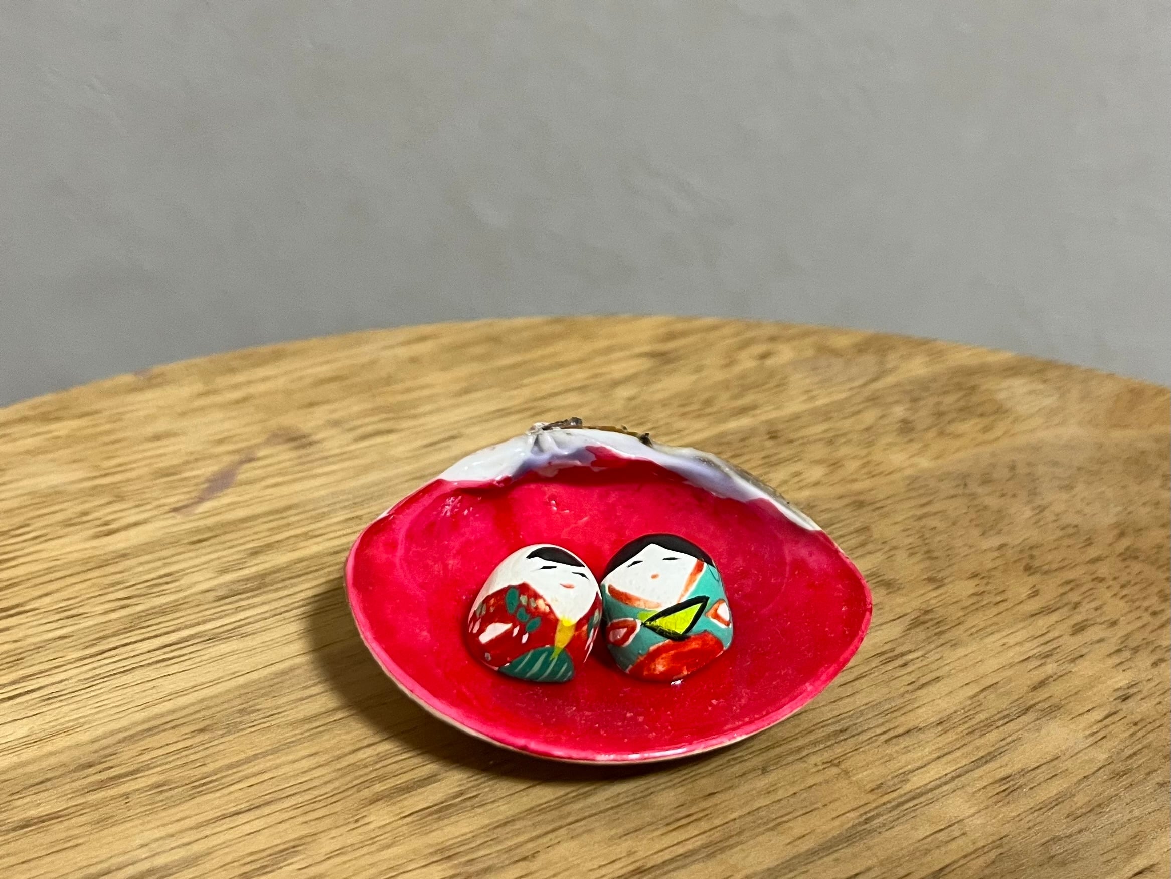 まめつぶサイズの小さな十五人飾りと、貝雛の土人形です。