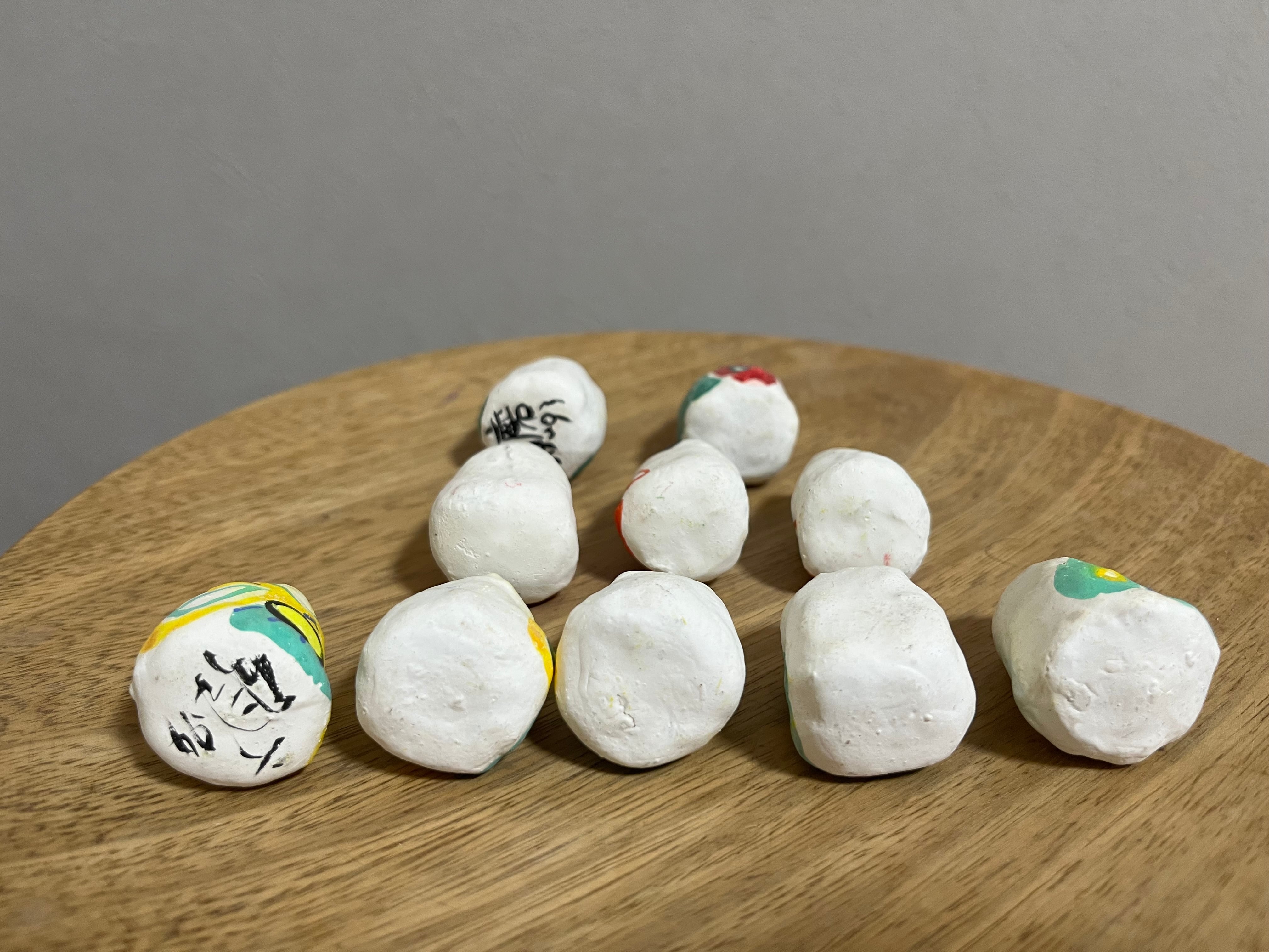 人形1個のサイズ:縦約3cm、横約2.5cm、厚さ約2.5cm