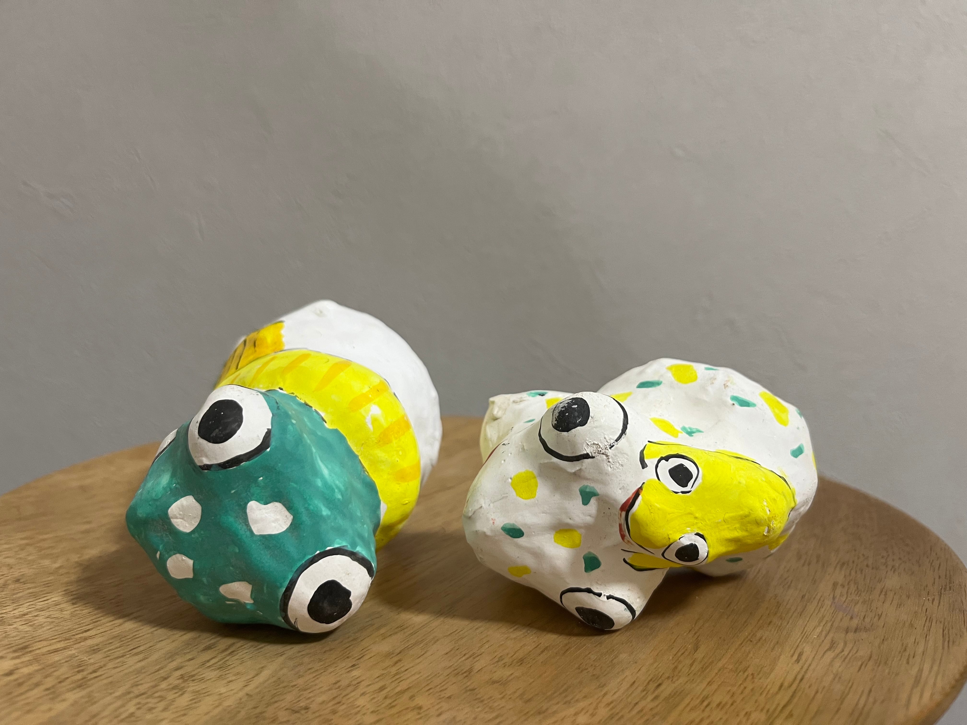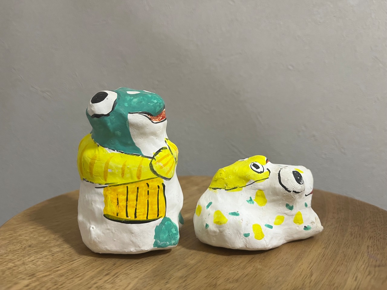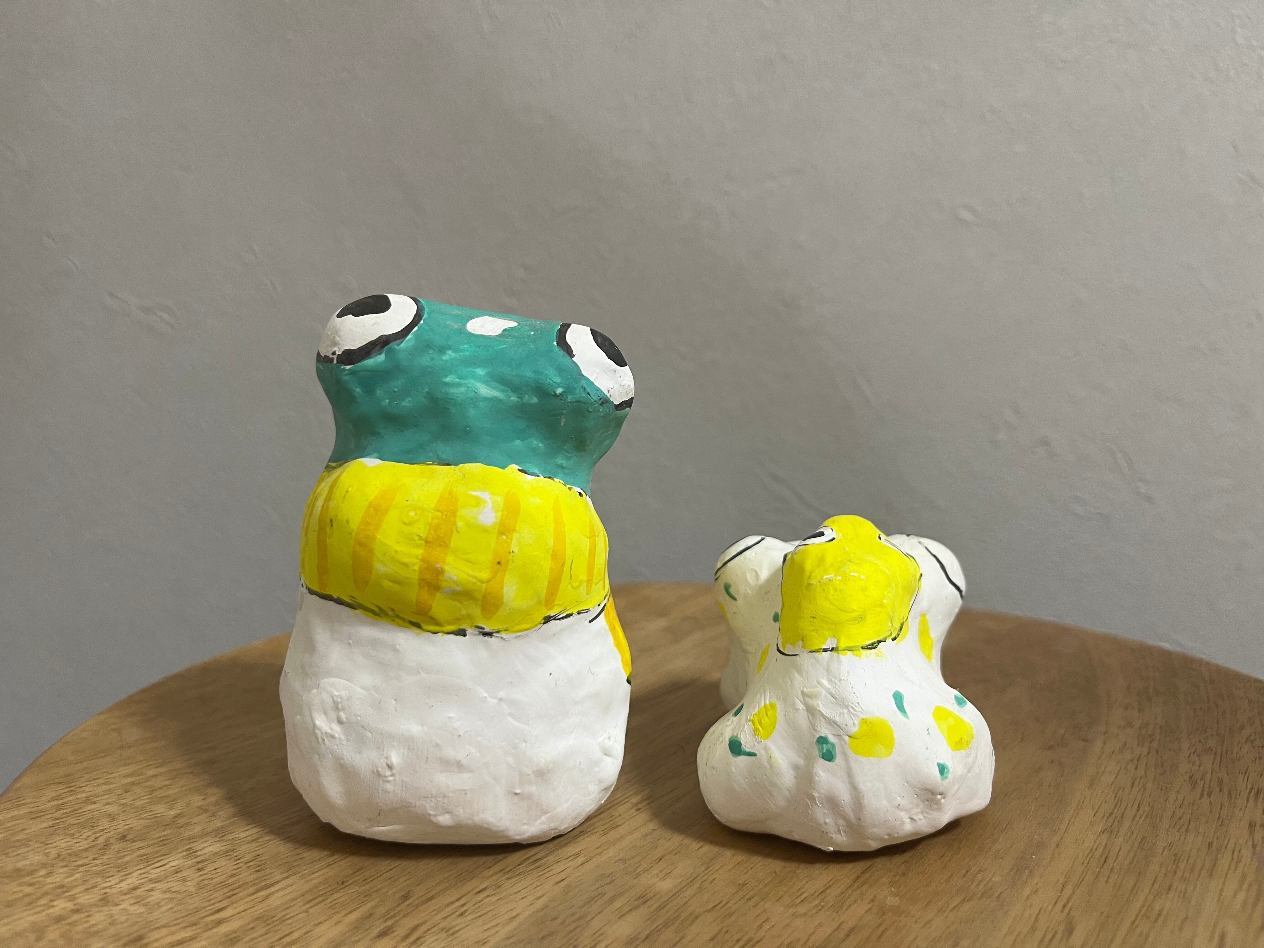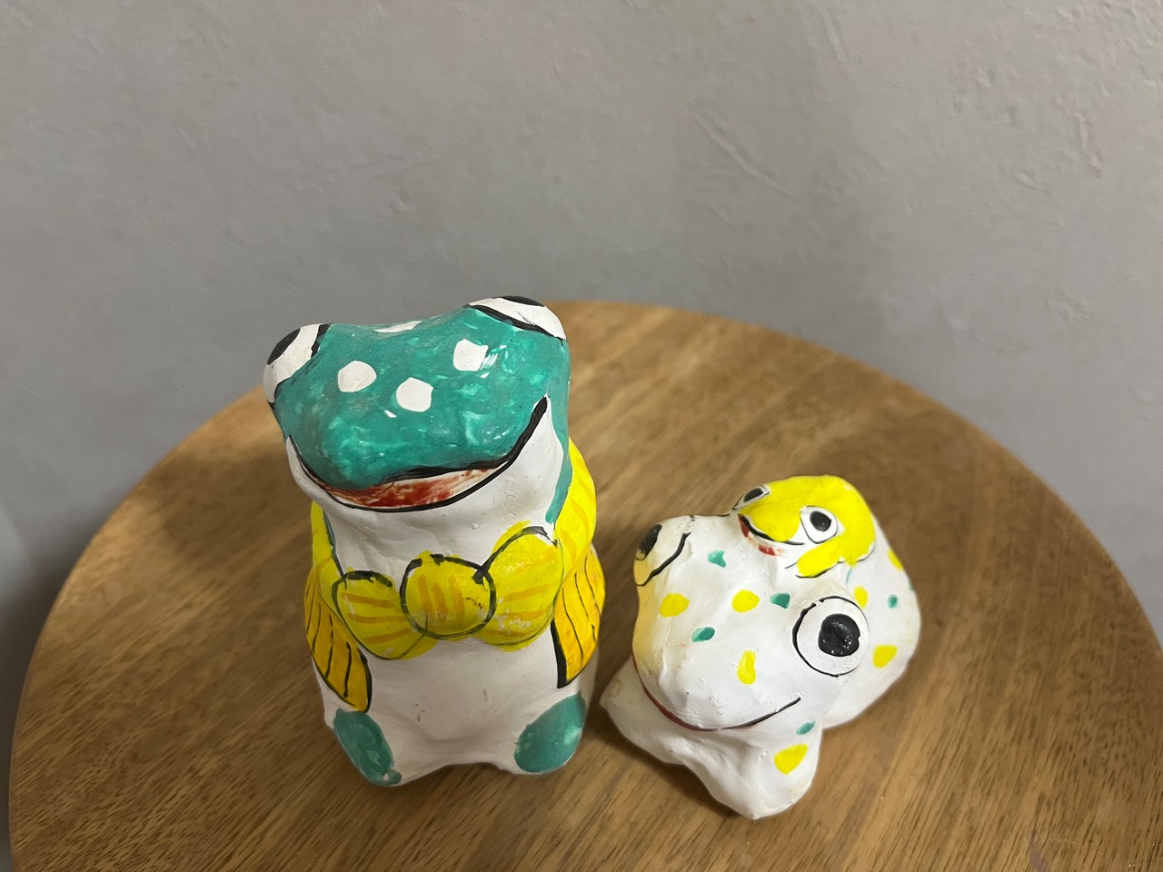 春らしいパステルカラーで、水玉模様がおしゃれなカエルたち。インテリアとして映えるカラーリングです✨
