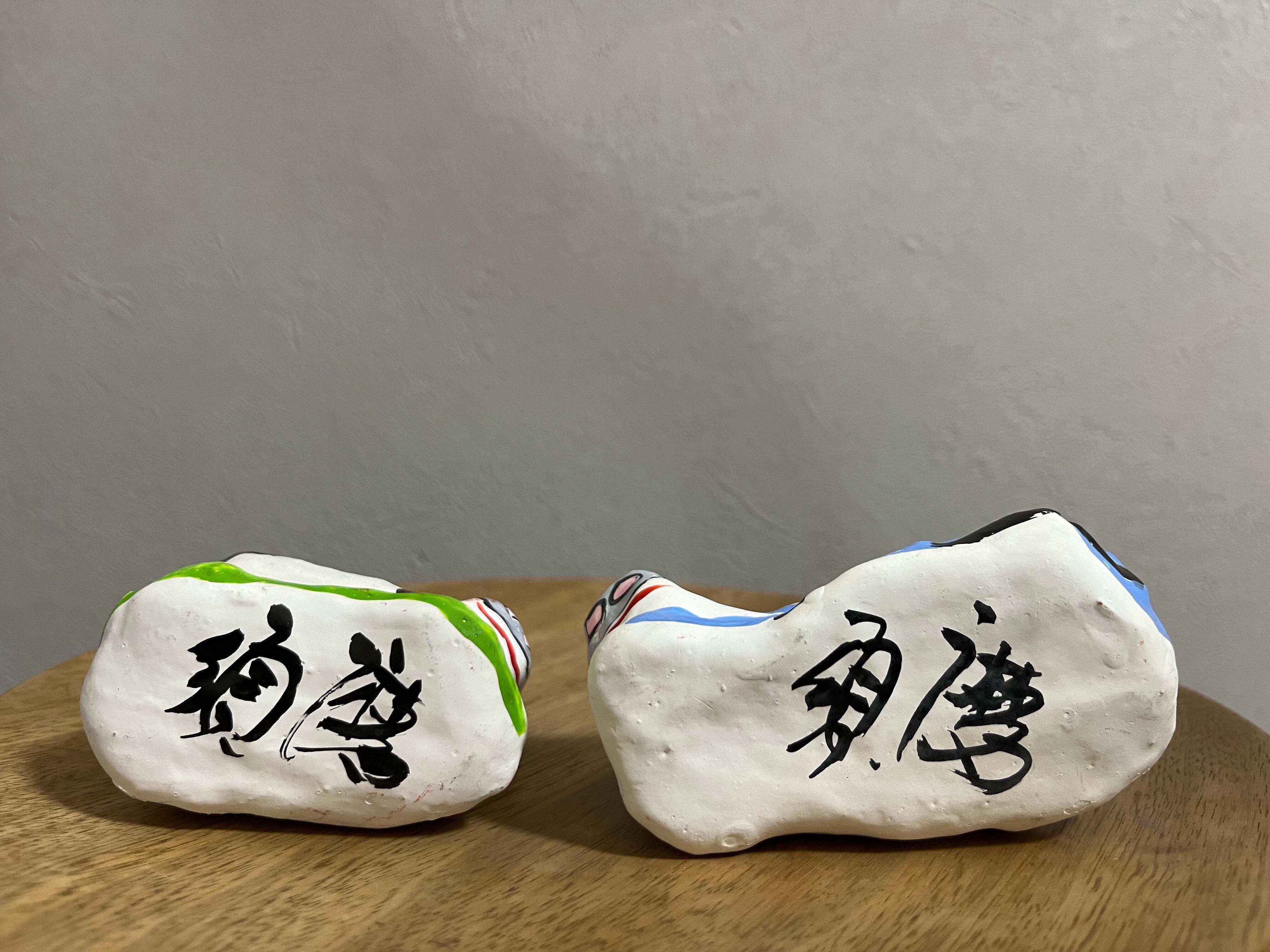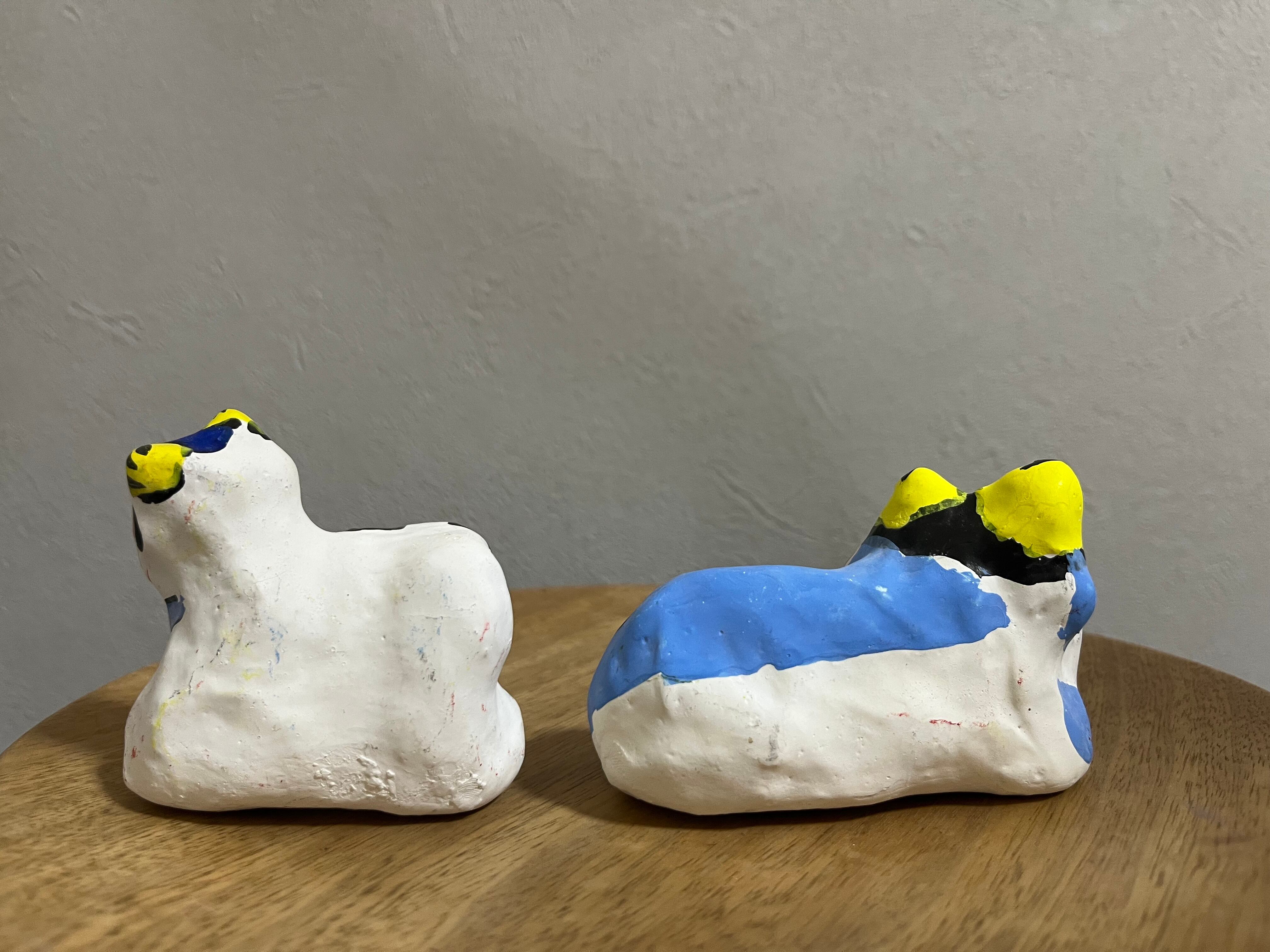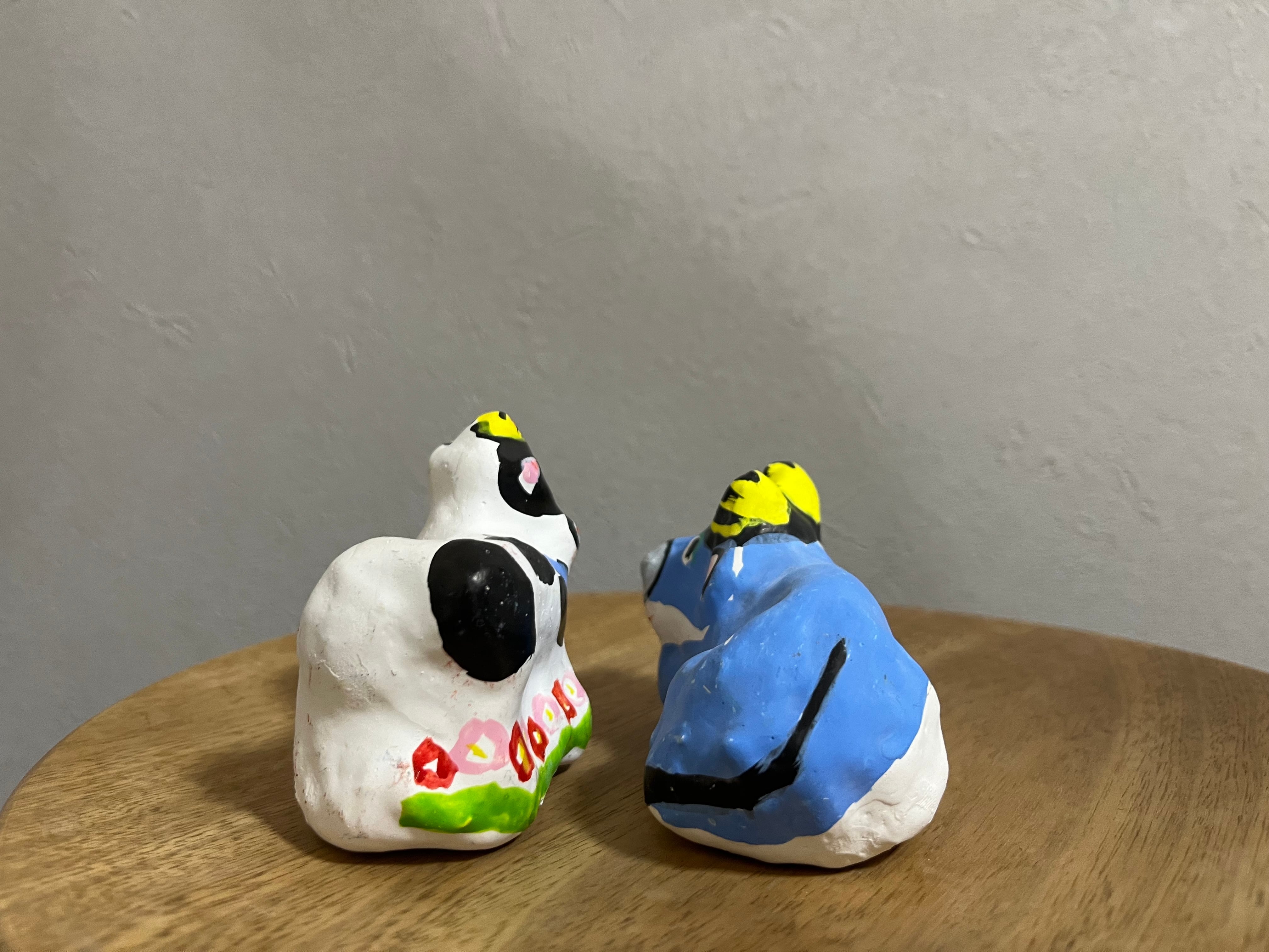 花畑の中に立つ牛と、爽やかなスカイブルーの牛の、春らしいデザインのセット。