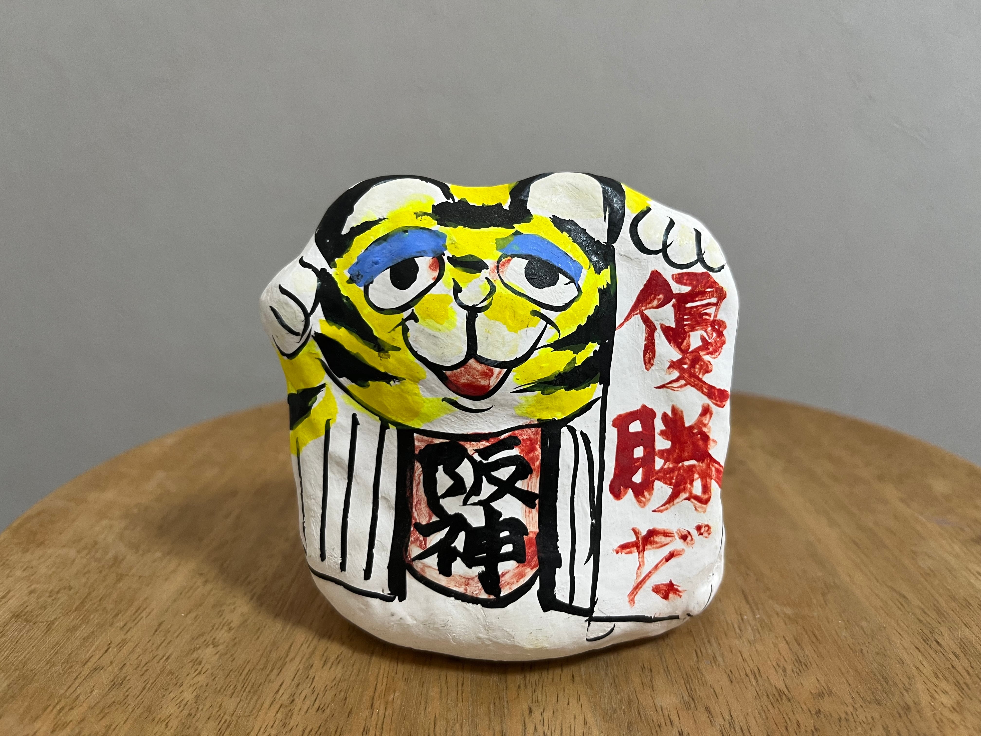 旧須磨張り子館のデッドストックの中から、超レアな阪神タイガース優勝を応援する作品を見つけました。